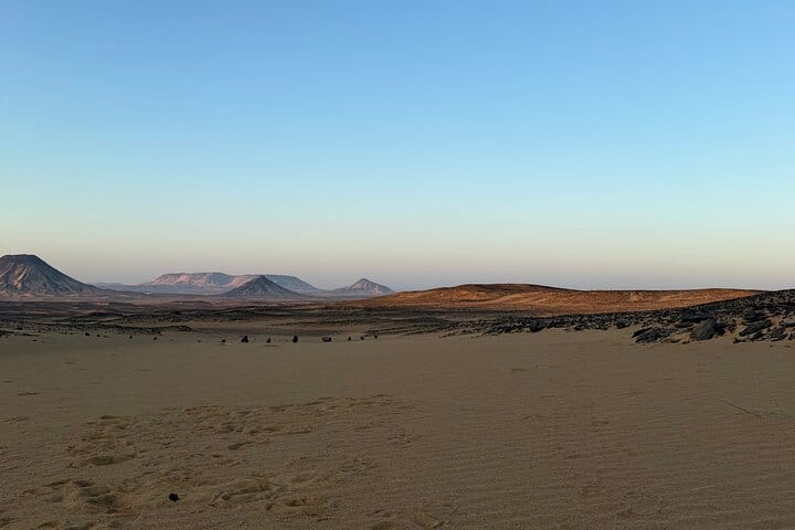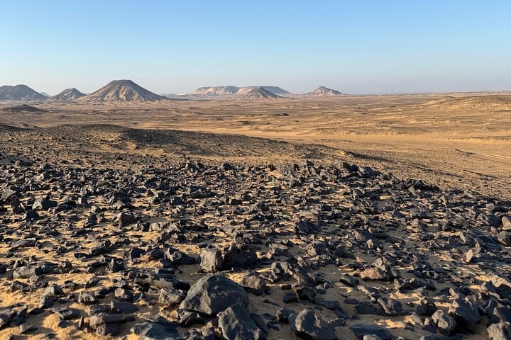 Travel by 4x4 through the Black Desert’s volcanic landscapes, crystal formations and golden sand dunes.