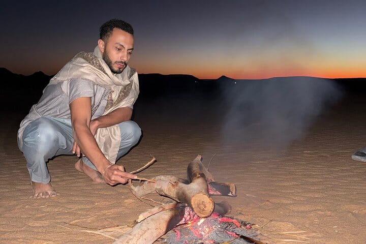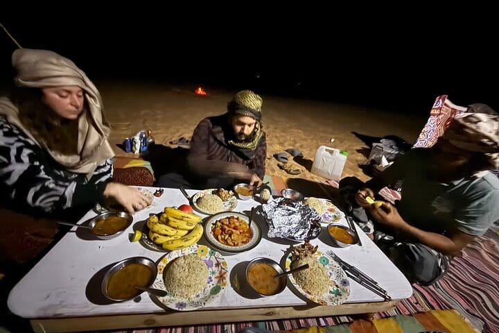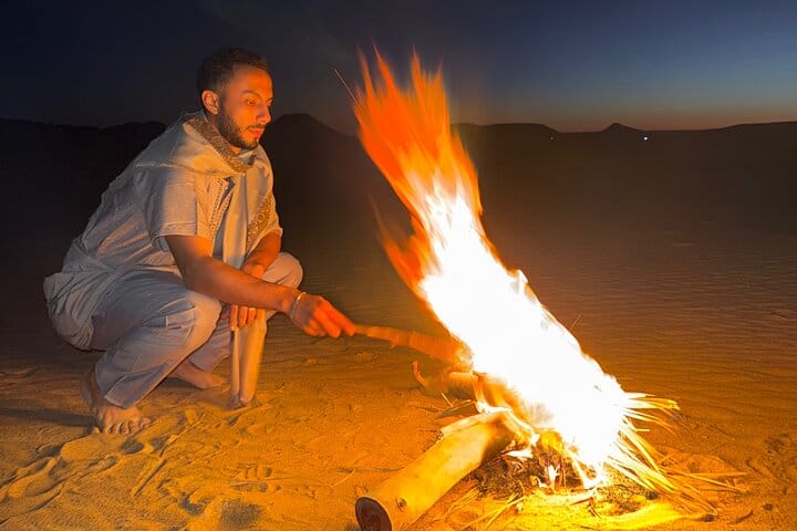 Spend the night in a private desert camp with barbecue dinner by the campfire and sleep under millions of stars.